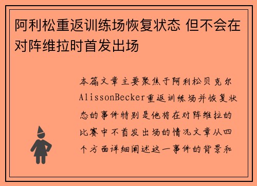 本文围绕阿莱格里提出的“若能预见伤病,将提前调整球队引援与阵容整体规划布局”这一核心观点展开,从球队管理、转会策略、阵容建设与风险预案四个方面进行深入分析。文章开篇摘要将对全文内容进行统领式概述;正文部分采用多个自然段进行平衡阐述,并通过四个小标题开展系统性分析;最后以总结段落回扣主题,深化全篇逻辑...
